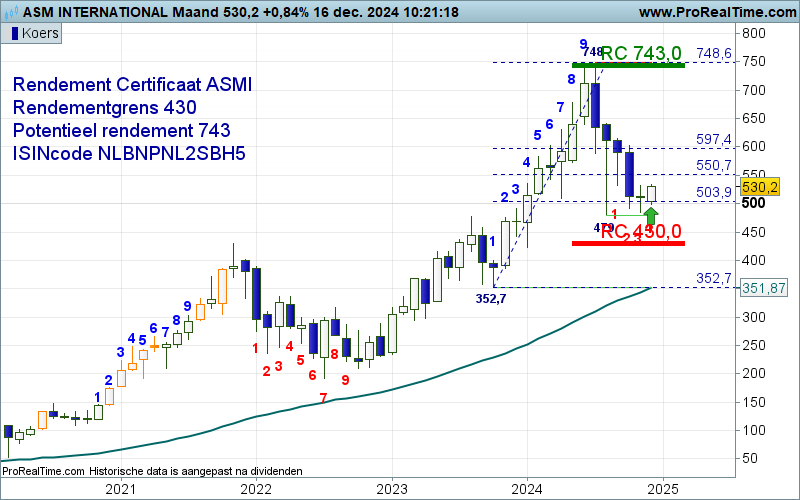 Richting de jaarultimo worden beleggers overladen met tips voor 2025. Veelal ligt het accent daarbij op de aanschaf van het aandeel, danwel een afgeleid produkt zoals de optie en de Turbo. In het recente webinar Visie & Tips 2025 heb ik de aandacht gevraagd voor een ander zeer interessant beleggingsprodukt, te weten het rendement certificaat en wel voor het aandeel ASM International. Sta mij toe een nadere toelichting te geven.