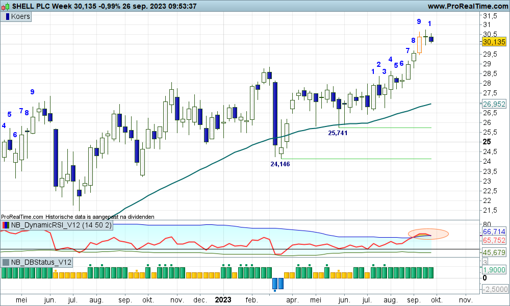 Shell PLC is een fonds dat in vrijwel elke beleggingsportefeuille voorkomt, in welke vorm dan ook. En terecht, want charttechnisch gezien is er sprake van een uitstekend koersverloop. Toch hangt er een afkoeling in de lucht. Niet erg, na de dip zijn er weer koopkansen.